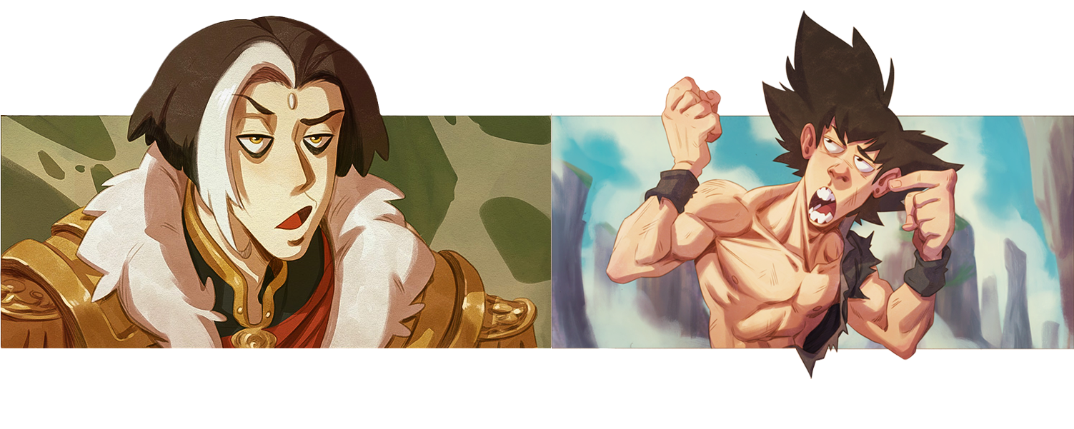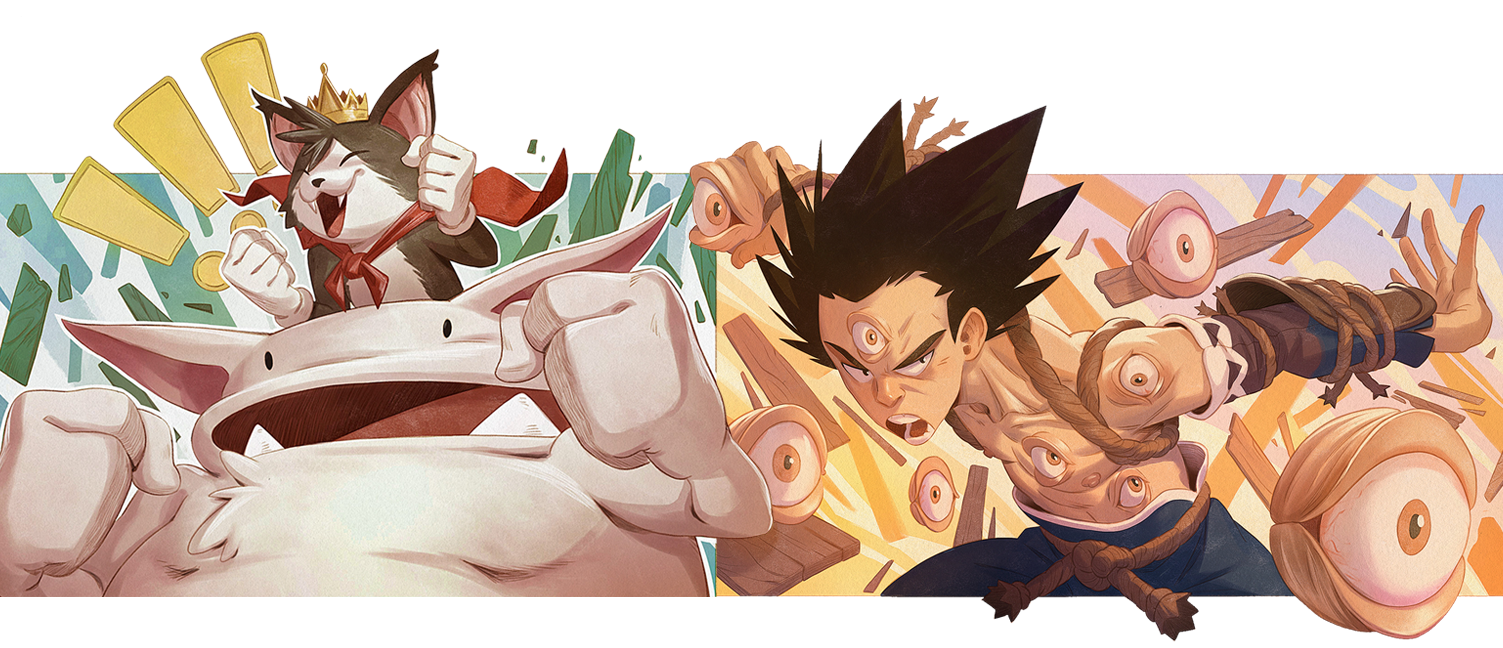 • Two characters interacting or one character with additional elements or very complex design.